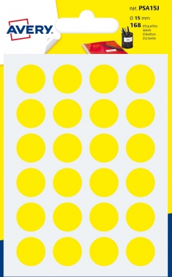 Bollini adesivi rotondi, di colore giallo. Scrivibili a mano: