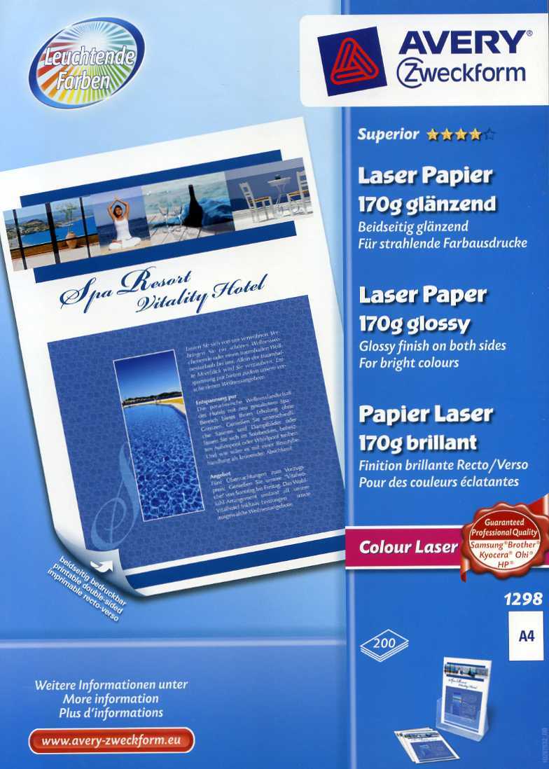 Carta fotografica patinata lucida Superior Avery. Adatta a stampanti laser: