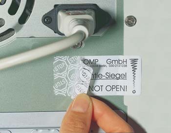 Anti-manomissione: in caso di tentativo di rimozione sulla superficie sottostante l'etichetta rimane impresso un motivo a scacchi. Ideali come sigilli di manutenzione o d'ispezione o per contrassegnare un prodotto originale come autentico.