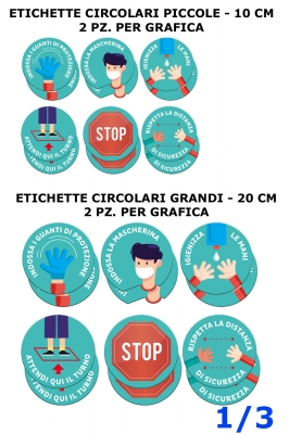 Etichette circolari grande pre stampate, diametro 20 cm.